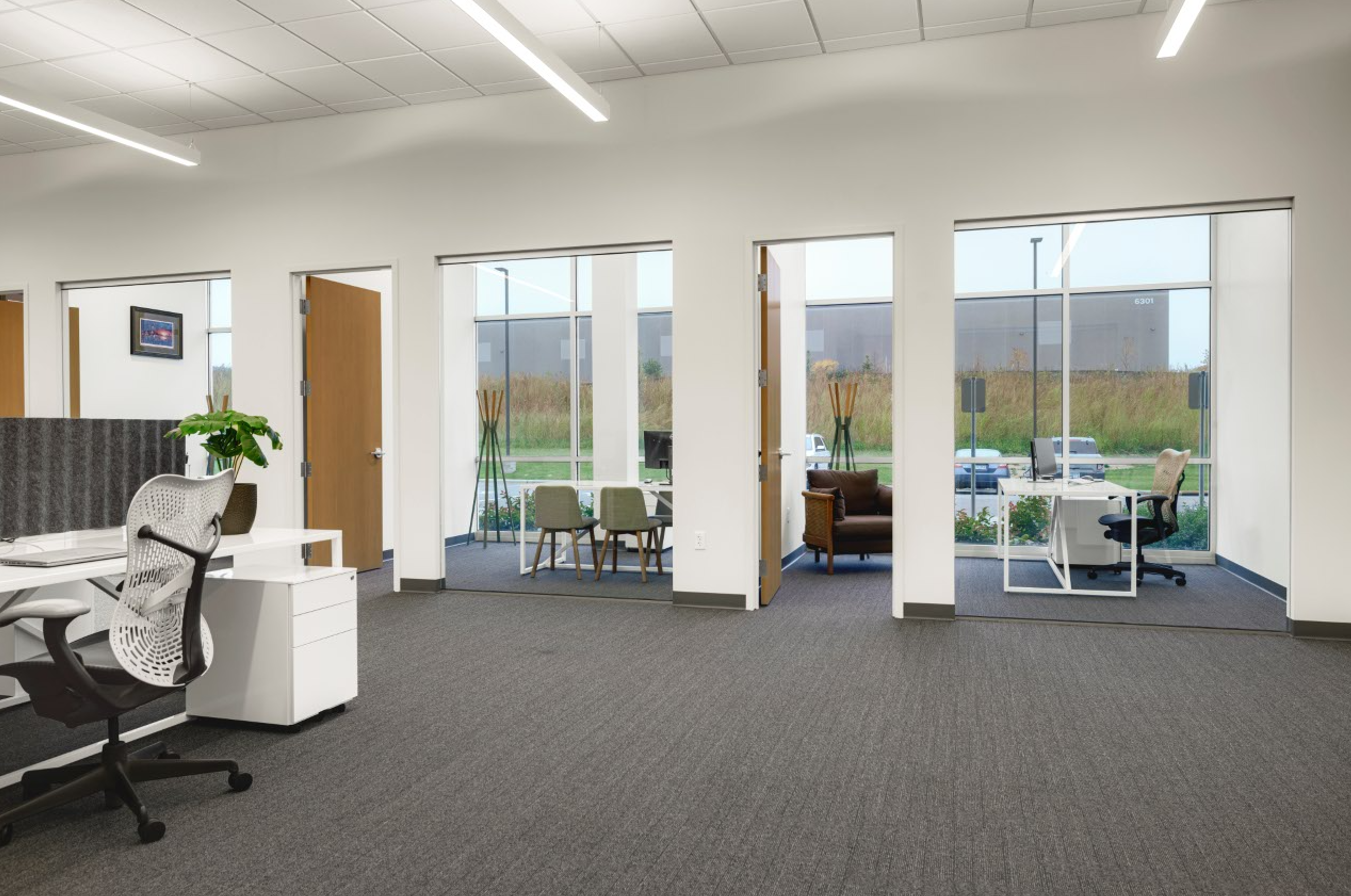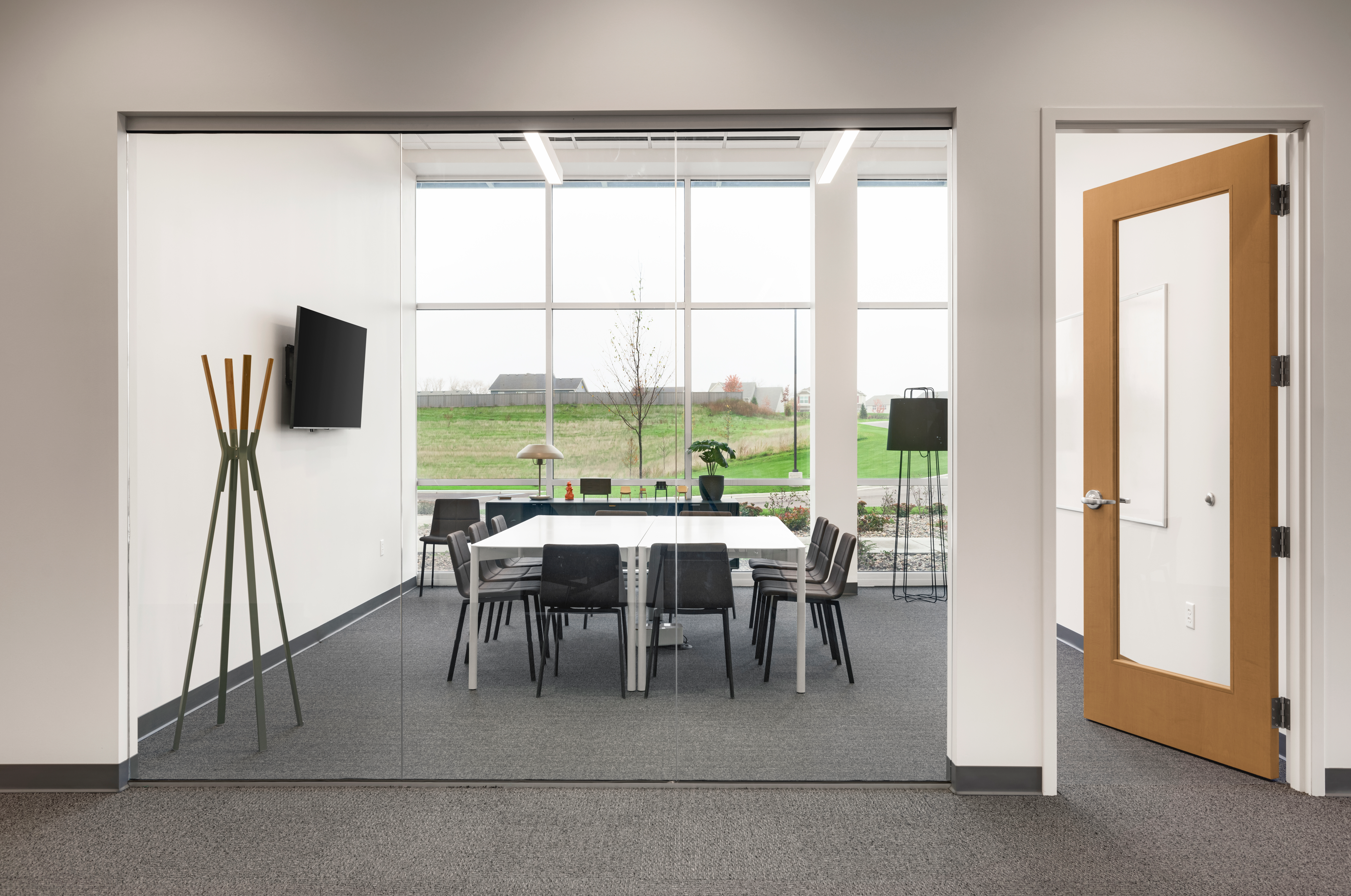 The interior design concept embraces minimalism, featuring sleek finishes and crisp lines that serve as a sophisticated backdrop for Blu Dot’s pieces. A dynamic mix of open and private offices, paired with diverse collaboration zones, fosters a flexible and inviting work environment. At the heart of the space, a spacious breakroom with an outdoor patio bridges the office and warehouse, creating a central hub for employee connection, company meetings, and events.