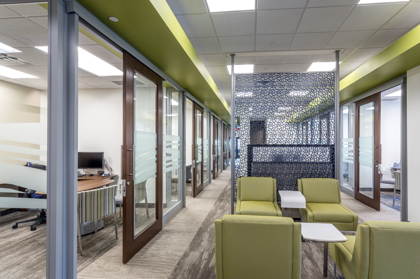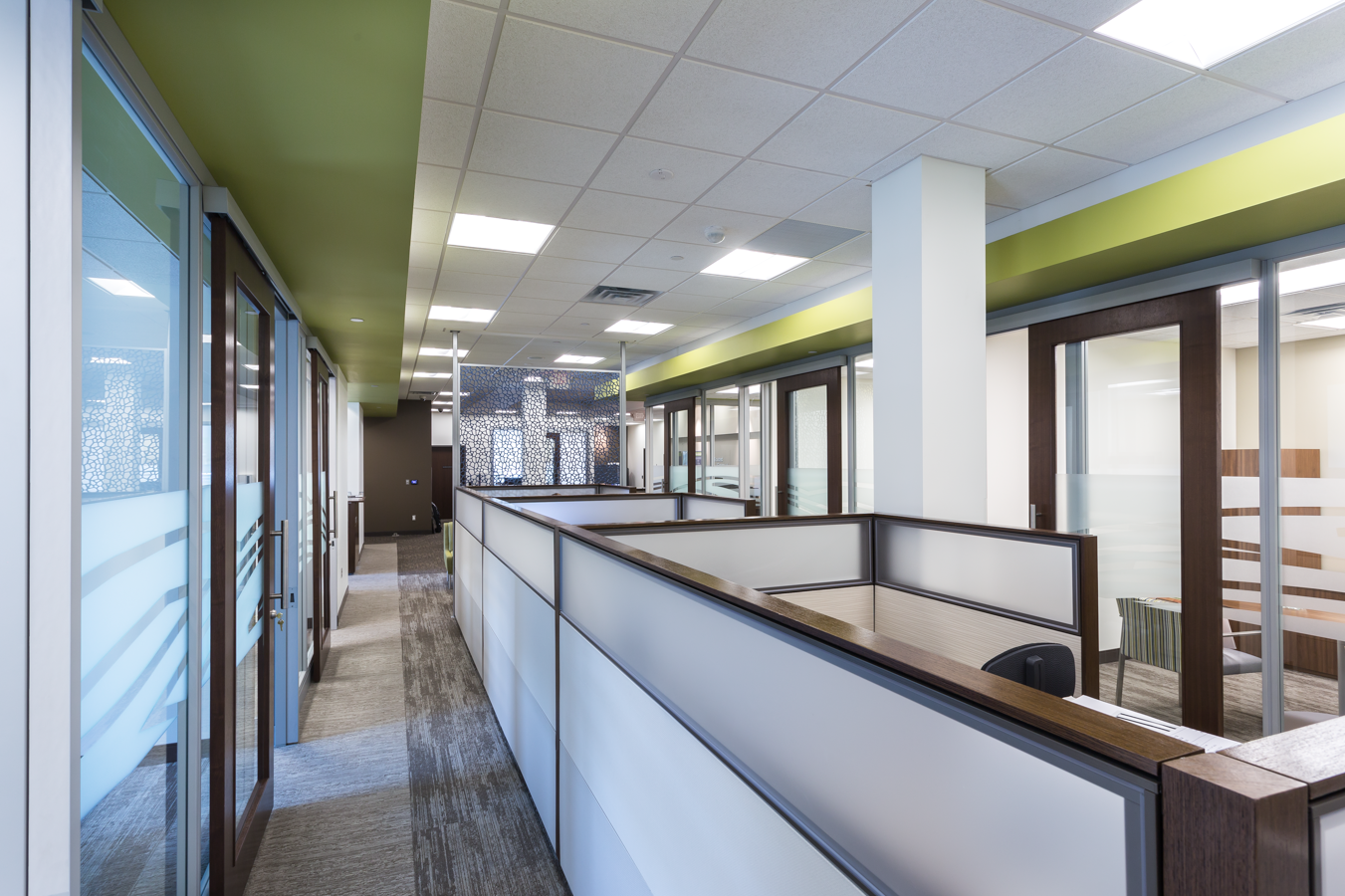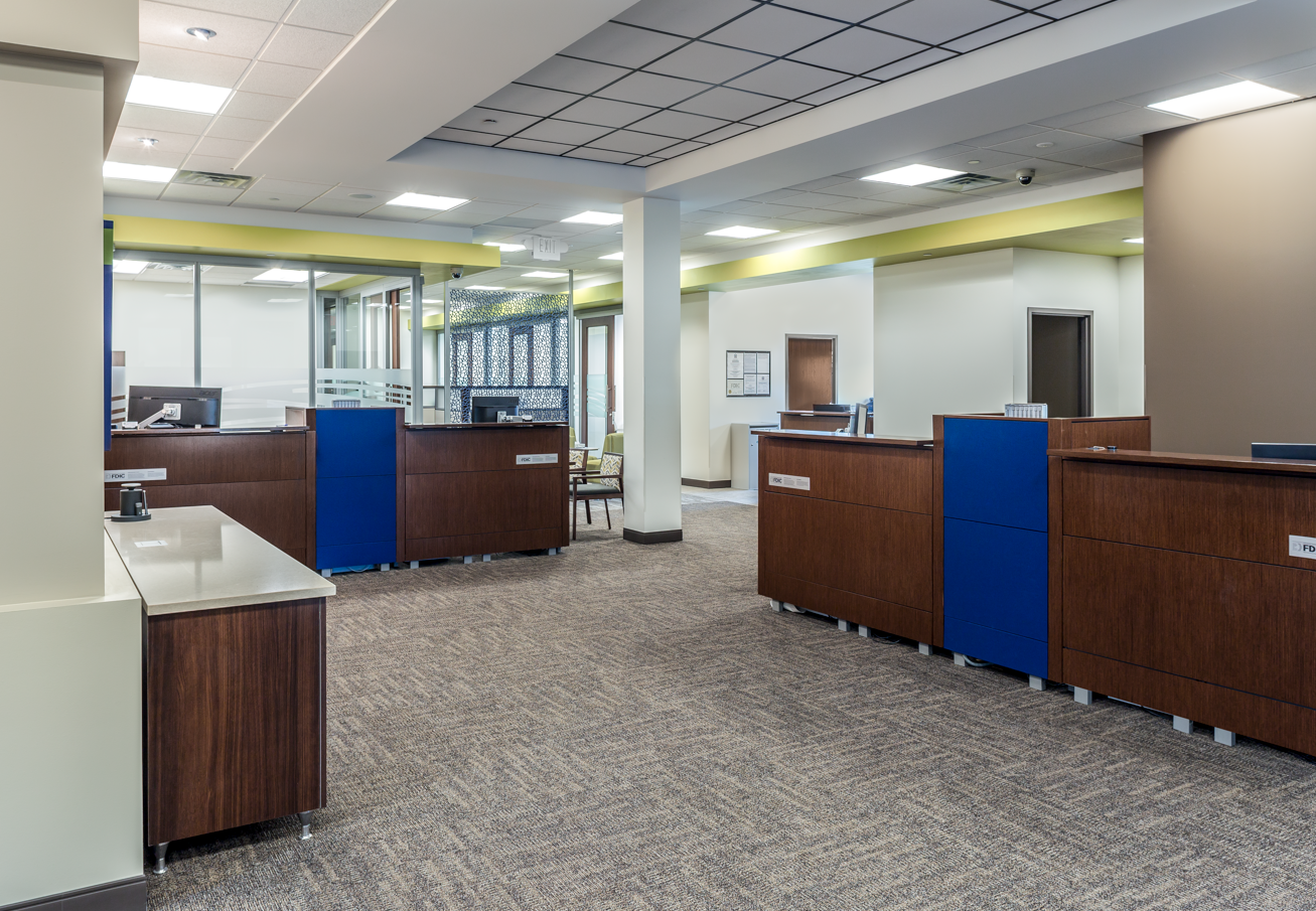 A sleek, neutral palette sets the foundation, while vibrant pops of Highland Bank’s signature green and blue bring energy and brand recognition to the space. The redesigned drive-thru enhances efficiency, and strategic planning left room for future tenant leasing opportunities. The result? A dynamic, modern banking environment that’s as smart as it is stylish.