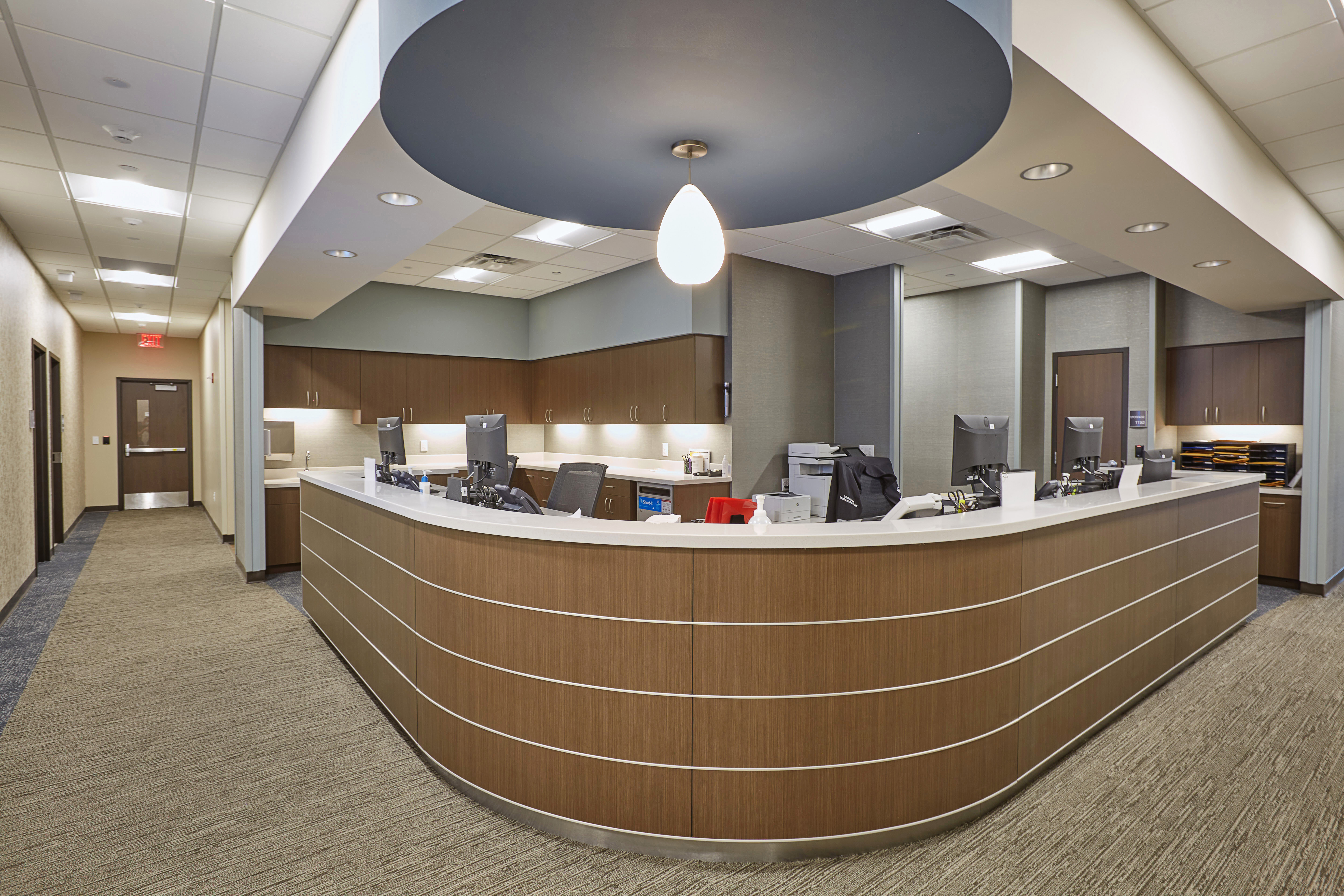 This facility was designed with an efficient circular flow as this includes both a clinic and an ambulatory surgery center. This benefits MNGI by cross-utilizing nurses. Additionally, a doctor bullpen was replaced with individual 6 ft. X 7 ft. cubical spaces with doors so doctors could engage with patients via telemedicine without occupying an exam space.