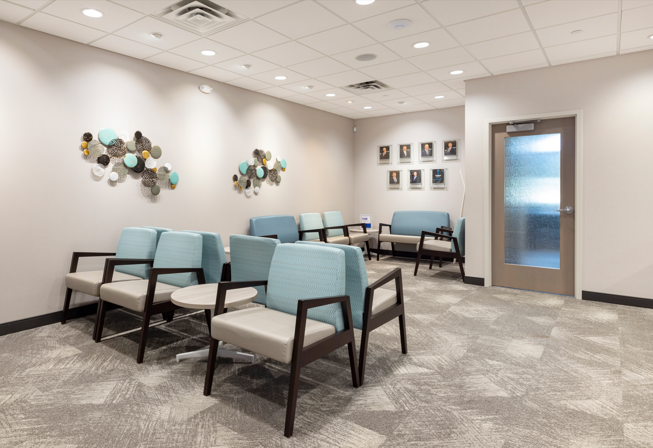 A soothing color palette, layered textures, and thoughtfully designed interiors create an inviting atmosphere that promotes both patient comfort and clinical precision. Every detail was intentionally designed to enhance the patient experience while supporting a seamless, high-quality standard of care. The result is a sophisticated, state-of-the-art oral surg.ery clinic that reflects the excellence of OMS Specialists.